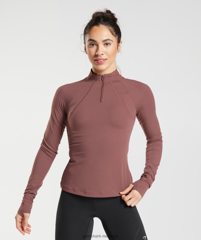 Gymshark mujer corriendo 1/4 zip marrón magenta D20628359 Gymshark México